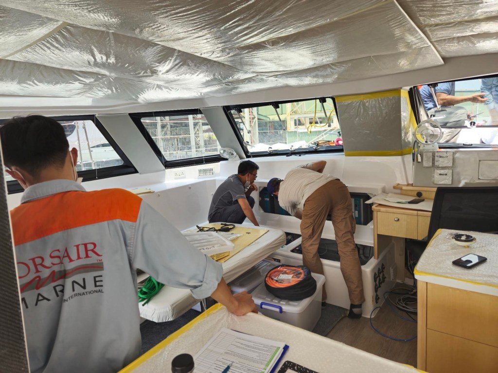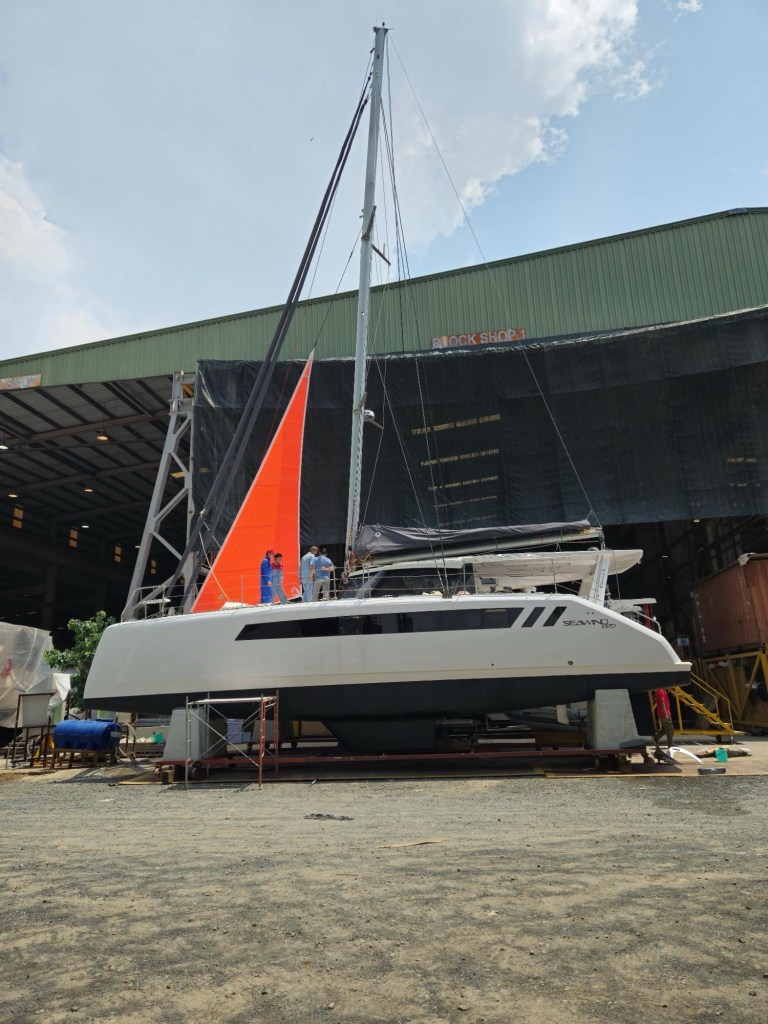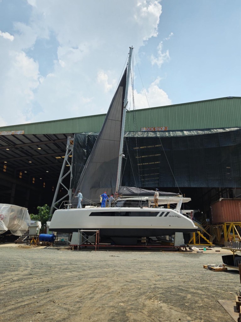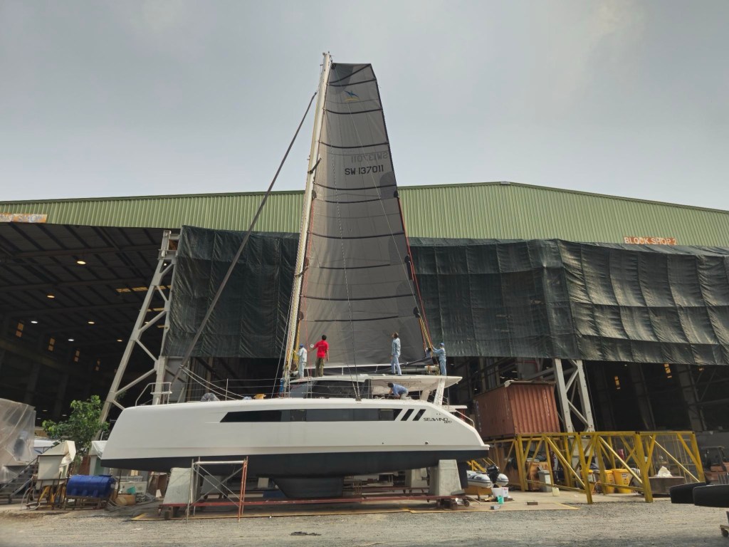 Finally the boat is close to launch. Seawind will sea trial the boat to check systems under sail, bring the boat back to the factory for final checks and then a crew takes her for the 5 day trip to Pattaya Thailand where we will pick her up.