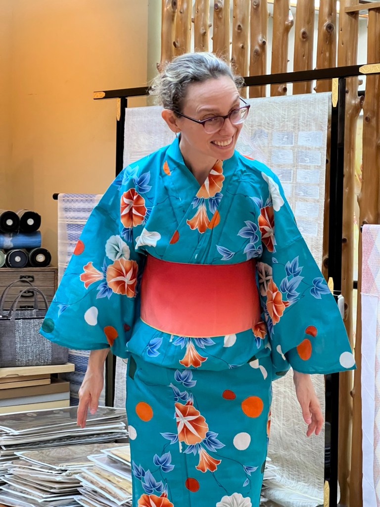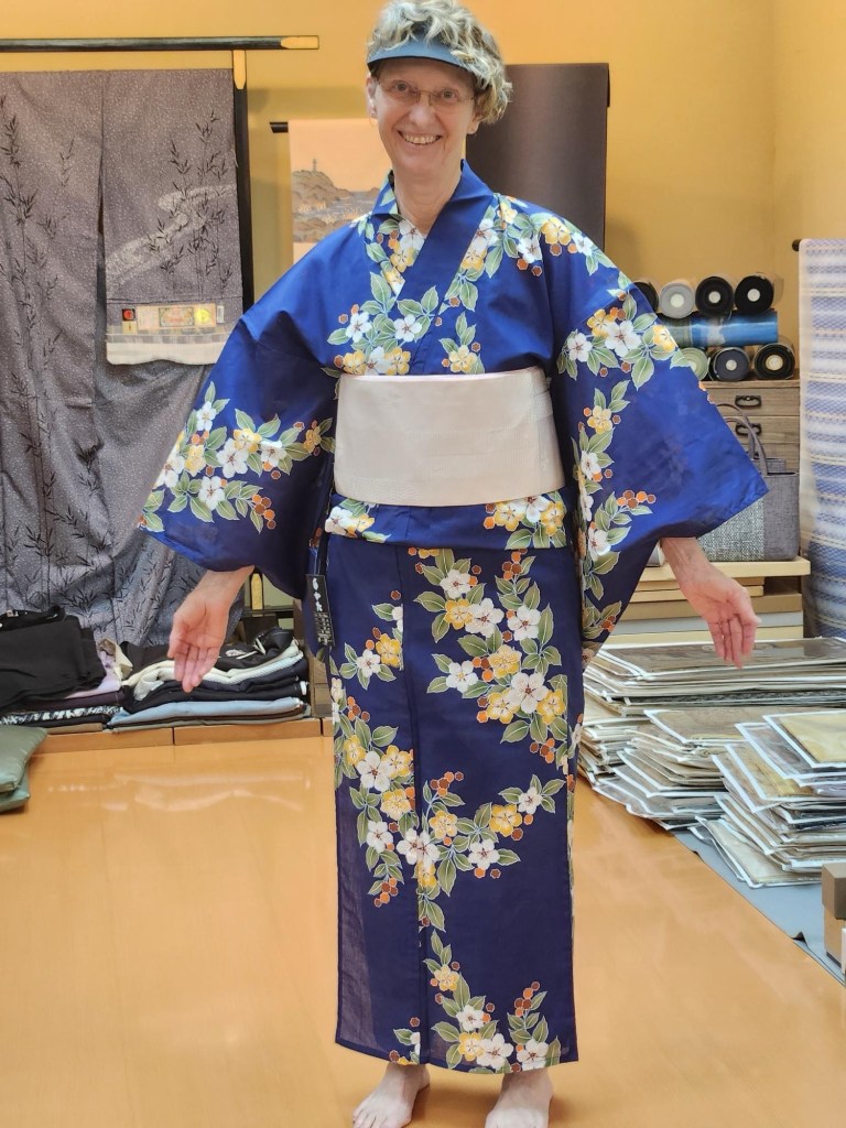 The temples are large and impressive especially the one with the giant Buddha statue, Todai-ji. We experienced our largest crowds there. Beyond that there were several different temples and shrines and lots of stone lanterns and hanging metal lanterns. They must look spectacular when all lit up. We went to a couple of gardens which were small but lovely; then saw a kimono exhibit at the museum. And that was just the first day.