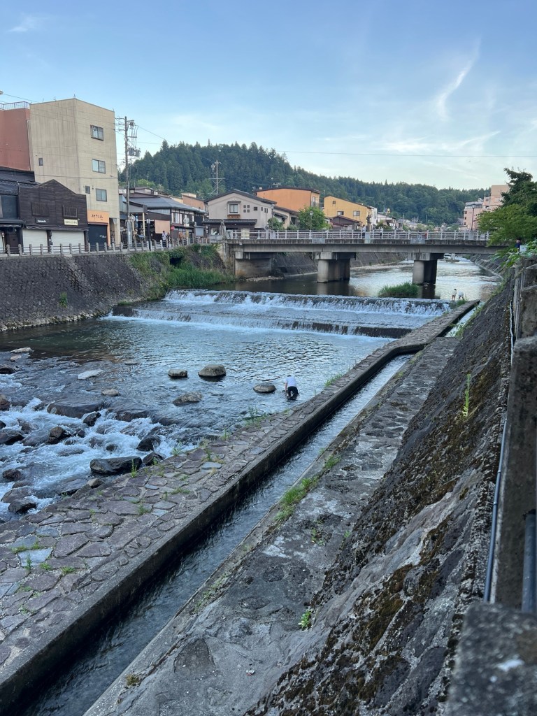 Kana met us again Kanazawa and we took a bus thru mountain tunnels to Takayama. We have a spare but lovely 3 story bnb, kitchen and bathroom on 2nd floor along with a large almost empty living/dining room with a table that can seat up to 6 with long benches. There is a tv and some tatami mats and a small low table with floor cushions. There are 2 bedrooms upstairs, one with a double bed and ac, one with a single futon. The first floor has 2 single beds and the main bath with a shower and tub.