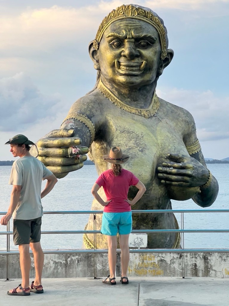 After that it was a nice sail down to the island of Ko Samet where we anchored close to the Na Dan pier. It has this huge statue of a female giant standing waist deep in the water at the end. The thai navy showed up in a rib right after we dropped the hook to collect the national park fee, 200 baht a person plus a ticket for the boat. Luckily the tickets are valid for a while and we also used them on our way back.