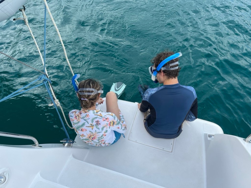 One day we took the dinghy out and snorkeled the reef closer to shore, the visibility wasn’t amazing but it was really fun to see the fish and coral. Then we came back and picked up John and Dana for a snorkel and walk on shore. Turns out they have a lot more snorkel experience than we do! They were leading the way.