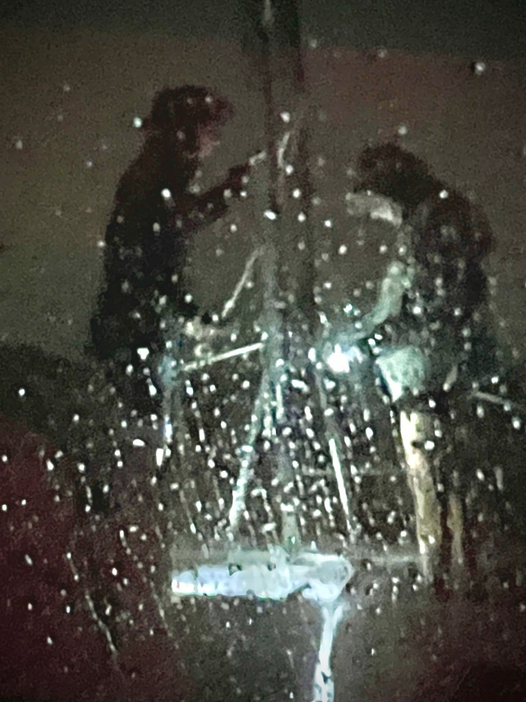 Next spot they wore headsets; Bree wore her raincoat hood over hers and the set was much less dramatic. I tried to take photos which were of very questionable quality but under the circumstances… The engine decided it was a good time to put a notice out so we could have a bit more panic time but Simon went down and checked them and couldn’t find anything wrong. We waited.