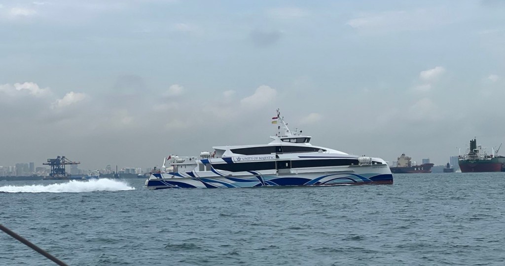 Next challenge, the strait of Singapore, the 2nd busiest shipping channel in the world after the english channel. Around 2000 ships a day pass thru the very narrow strait, 12 miles wide and 70 miles long. We would be taking 2 days to do it with a stop next to a navy base half way thru. This would help us avoid a strong current against and navigating in the dark. With the density of traffic the passage was more like a huge parking lot with tankers and containerships anchored all along the edge of the traffic lanes. And then little zippy boats flying around and the fast ferry from Indonesia to Singapore was interesting to watch; weaving thru the boats going both directions at 25 to 30 knots.